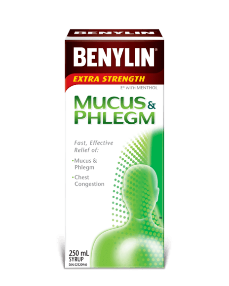 Excessive phlegm build up and coughing up mucus get old very quick. Get fast relief of your chest congestion symptoms with one of our Benylin® Mucus & Phlegm products. The guaifenesin in these caplets and syrups work by thinning the mucus in your air passages making it easier to cough up the mucus and help clear the airways. Choose from a variety of over the counter products that provide both daytime and nighttime relief. Help clear your chest congestion by choosing a product below.